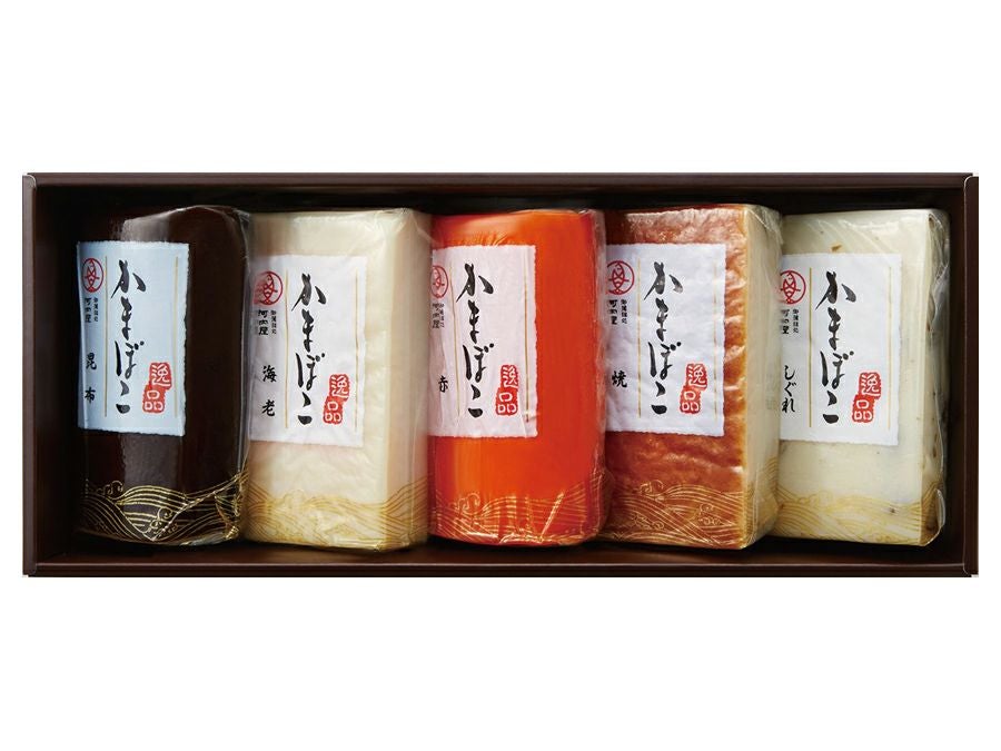普段のかまぼことはちょっと違う高級感もあり、風味豊かな人気の5種類を贅沢に詰め合わせた商品なので、節目のお祝いや御礼、ご挨拶の贈答用としておすすめです。