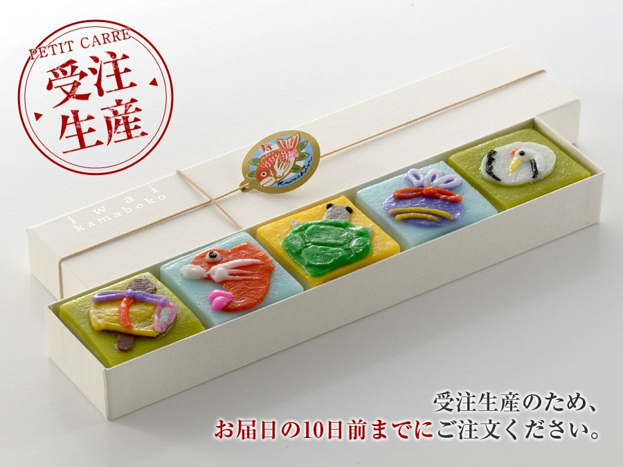 職人による手作りで完全受注生産の「プティ・キャレ」は、ひとつひとつ丁寧に細工が施された小さなかまぼこのセットです。
