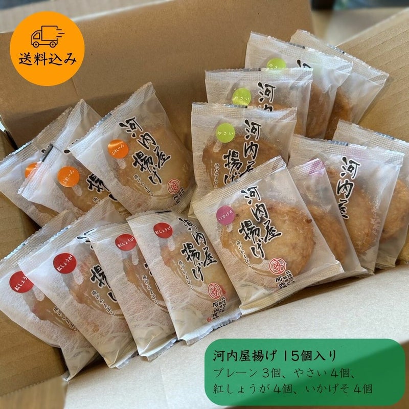 | 内容(量) | (プレーン)3個、(やさい)4個、(紅しょうが)4個、(いかげそ)4個 重さ:1袋約50g |