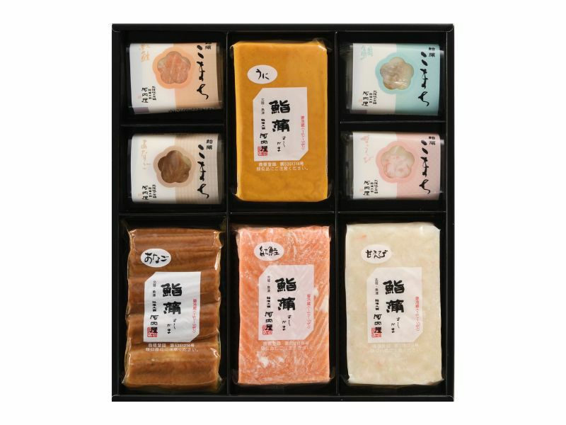 | 内容(量) | 【鮨蒲】あなご・紅鮭・うに・甘えび 【鮨蒲こまち】紅鮭・あなご・甘えび・鯛 |