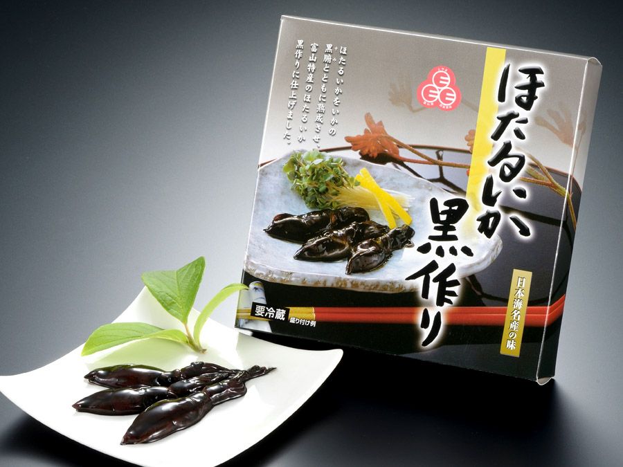 | 原材料名 | ほたるいか(日本海産)、食塩、砂糖、黒すみ、醤油(小麦・大豆を含む)、いかの肝臓、焼酎/甘味料(ソルビット)、調味料(アミノ酸等)、酒精 |