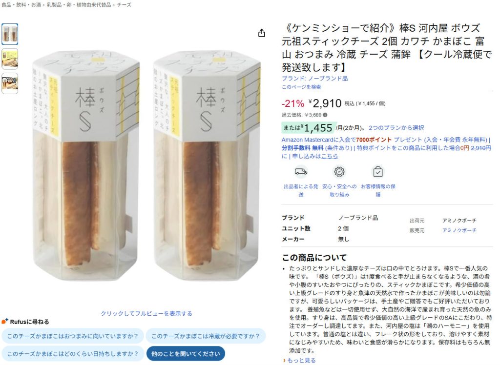 棒S 元祖スティックチーズ 2個セット | 2,910円 | アミノクポーチ |
