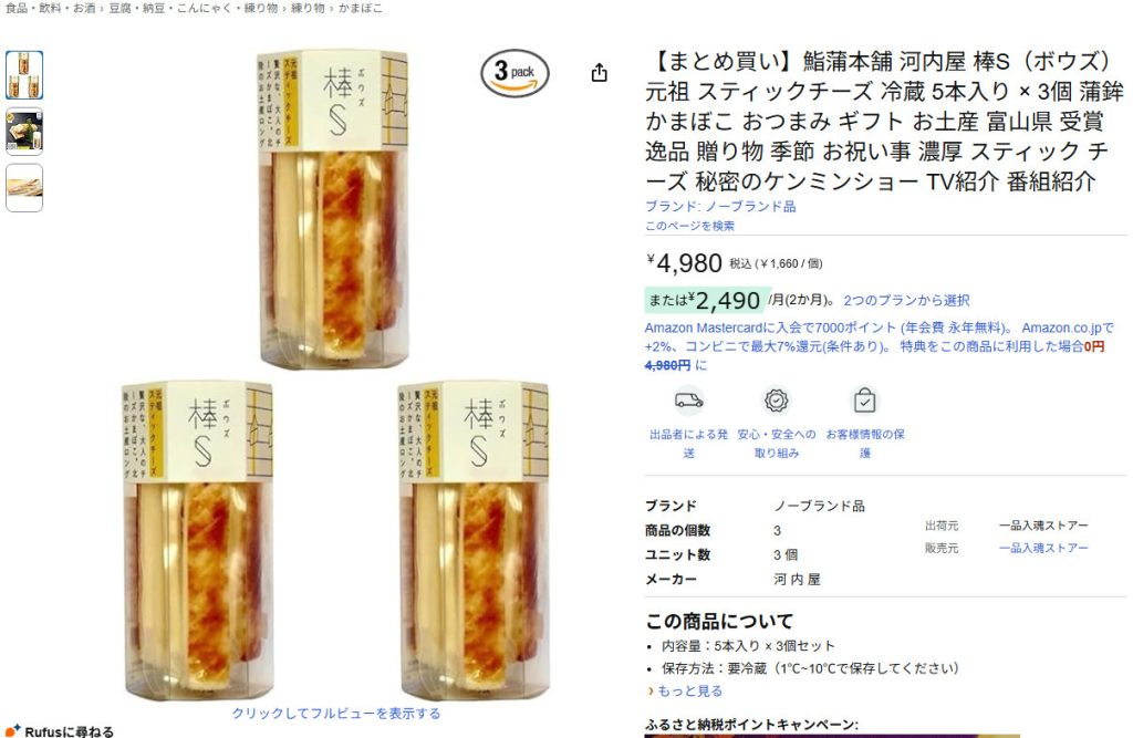 河内屋はAmazonでは「棒S」を販売しておりません。