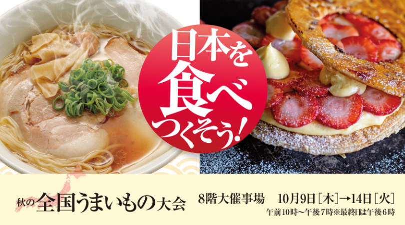 10月9日(木)から京阪百貨店 守口店 8階大催事場で開催される 「秋の全国うまいもの展」 に、河内屋が初出展いたします!