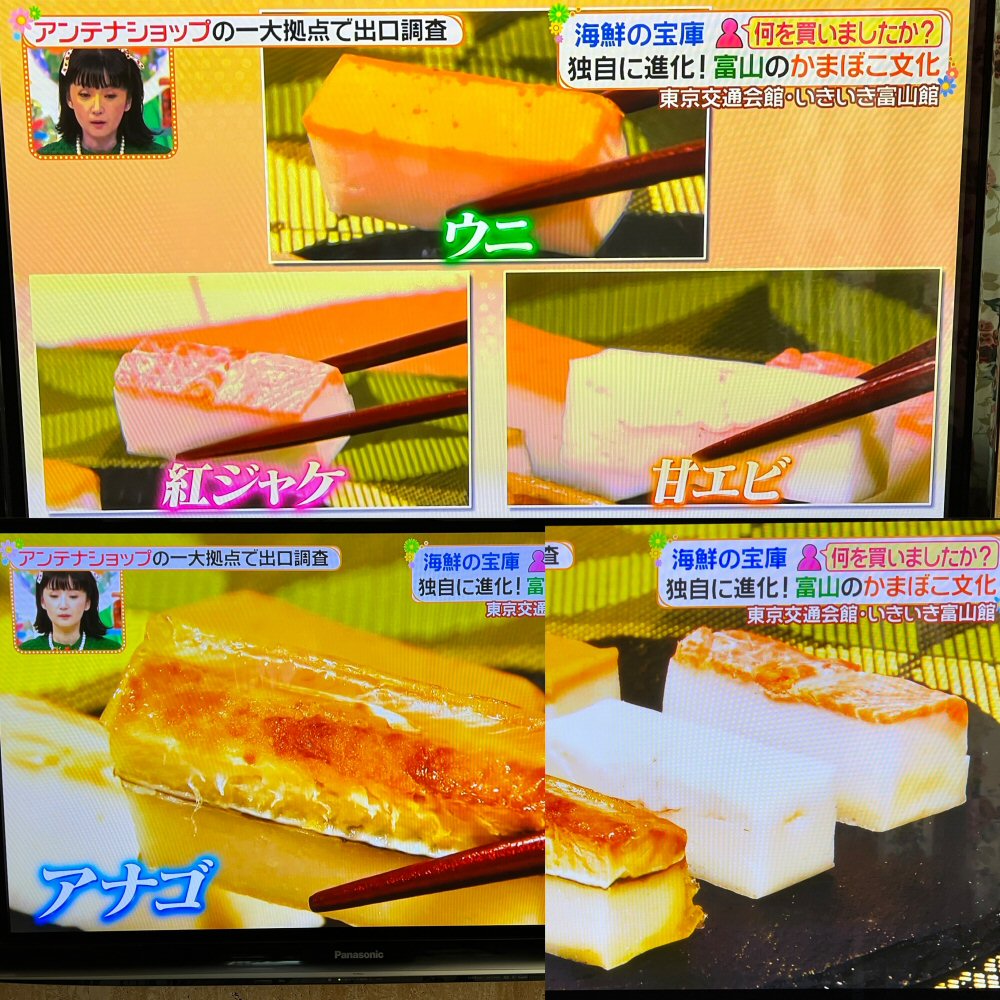 そして富山の蒲鉾の代名詞でもある富山名産昆布巻かまぼこと赤巻かまぼこを買物カゴに入れているお客様にインタビューされていましたが、それも河内屋の蒲鉾でした!