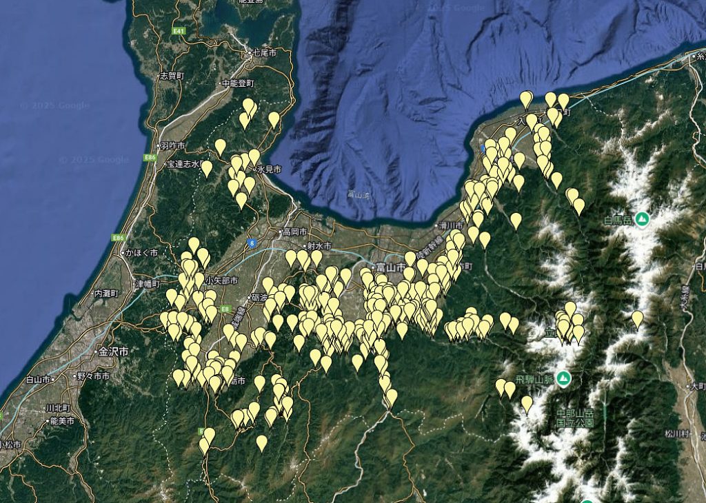 この画像は「富山県ツキノワグマ出没情報地図(クマっぷ)」と呼ばれるもので、令和7年10月31日時点でなんと 686件。