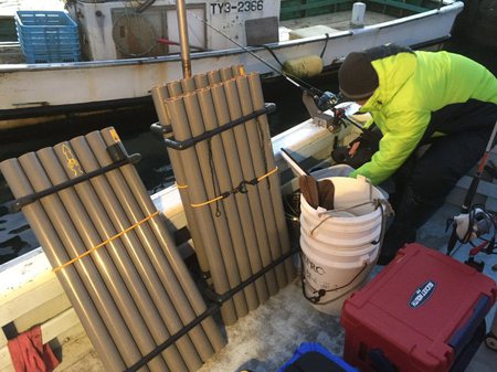 ちなみに上の写真は配管屋の後輩が作ってくれたプラズノ投入器。釣具屋さんで一度買おうと思ったことがあるのですが、価格が1万円くらいして手が出ませんでしたが、まさかこんなお手ごろ価格で手に入るとは感謝!感謝!M君ありがとう。