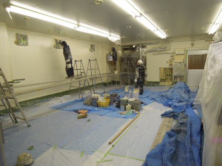 床、壁、天井が仕上がると雰囲気が非常に明るく感じます。5Sも今まで以上に進むような気がしますね。この改修工事が終了しても課題は色々とあるので常に改善の連続です。少しづつで良いので立ち止まることなく常に進化して行く事が重要であると思っていますので、社員一丸となって頑張りたいと思います。もう直ぐ改修工事終了しますので、ちょっと安心感が出て来ましたが、この後の機械の移動がまた大変な予感ですね・・・。