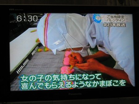 昨日の地元テレビKNBさんのニュースで河内屋が登場しました(^^)。バレンタインデーの特集で、福井、石川、富山のそれぞれで色々なバレンタイン商品を紹介していました。河内屋は富山県のご当地限定バレンタインという事で紹介して頂き、製造現場や河内屋本店の様子が出ていました。製造現場では、河内屋の蒲鉾職人が登場!