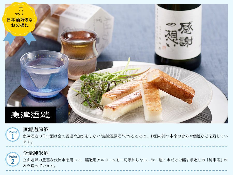 他の画像を見る 富山の地酒と蒲鉾セット 蒲鉾と名水の蔵 晩酌セット(秋冬用) クール便でお届け 価格 ¥ 7,671 税込 販売期間 2026/01/09 9:00 〜 2026/05/31 17:00 お父さんと乾杯!晩酌セット! 詳細を見る お気に入りに登録する
